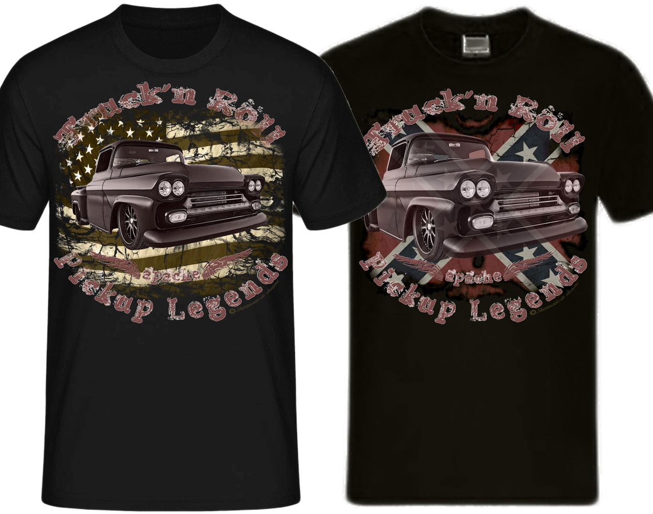 Truck n Roll 1958 Apache Chevy american Chevrolet Pickup Truck US Car V8, Rebel Redneck, USA Shirt, Amerikanischer Lifestyle, Donnernde V8 Motoren, gepflegte Spritvergeudung, Rock n Roll und Rockabilly ~ unsere Designershirts finden Sie nur exklusiv bei SHIRTMATIC !