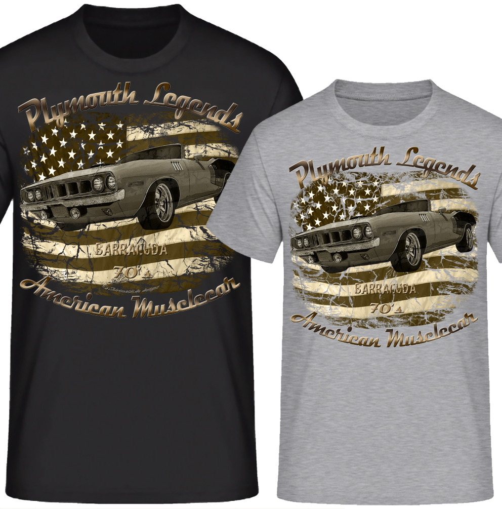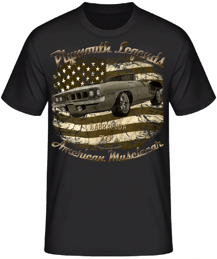 70s Cuda Barracuda Plymouth 1971 vintage USA V8 Shirt Amerikanischer Lifestyle, Donnernde V8 Motoren, Pinup Girls, gepflegte Spritvergeudung, Rock n Roll und Rockabilly ~Sie erhalten ein exklusives T-Shirt aus der SHIRTMATIC Motor & Rock Design Kollektion