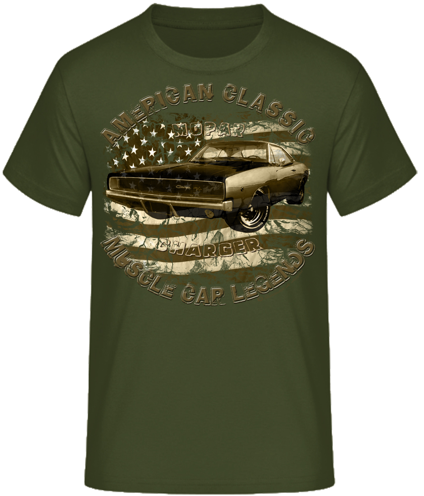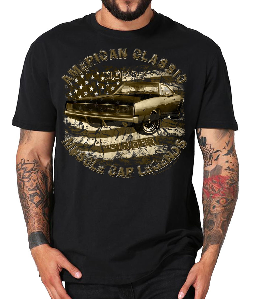 Classic Charger 68 vintage USA Flagge Amerikanischer Lifestyle, Donnernde V8 Motoren, gepflegte Spritvergeudung, Rock n Roll und Rockabilly. Sie erhalten ein exklusives Dodge Charger USA flag Vintage Car Designer T-Shirt aus der SHIRTMATIC Motor & Rock Design Kollektion