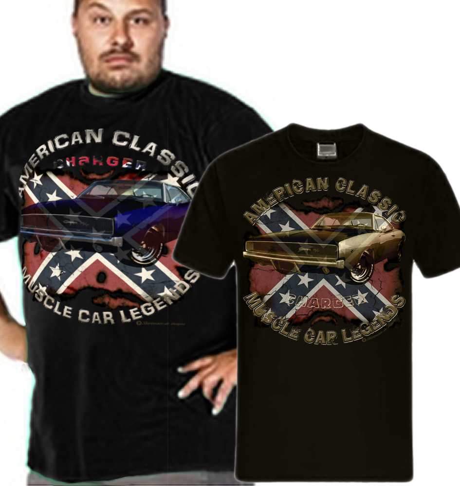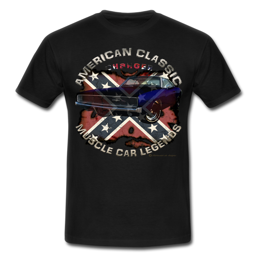 Classic Charger 1968 USA Muscle car V8 Dodge, T-Shirt US Car, rebel Shirt Amerikanischer Lifestyle, Donnernde V8 Motoren, gepflegte Spritvergeudung, Rock n Roll und Rockabilly. Sie erhalten ein exklusives Dodge Charger Rebel Vintage Car Designer T-Shirt aus der SHIRTMATIC Motor & Rock Design Kollektion, Color oder vintage retro motiv.