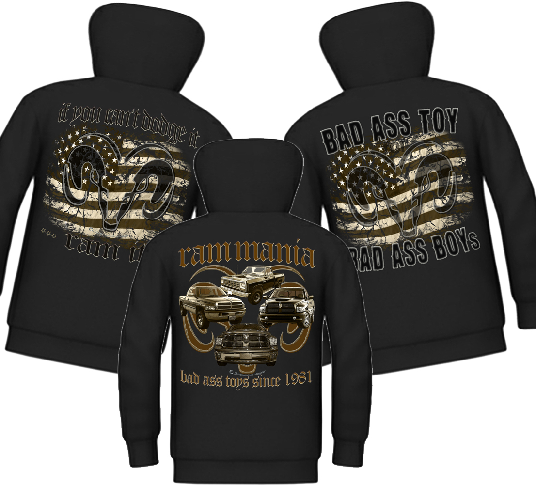 Hoodies NUR Rückenaufdruck Bad Ass Toy american trucks and mopars Dodge US Car V8. Amerikanischer Lifestyle, Donnernde V8 Motoren, gepflegte Spritvergeudung, Rock n Roll und Rockabilly ~