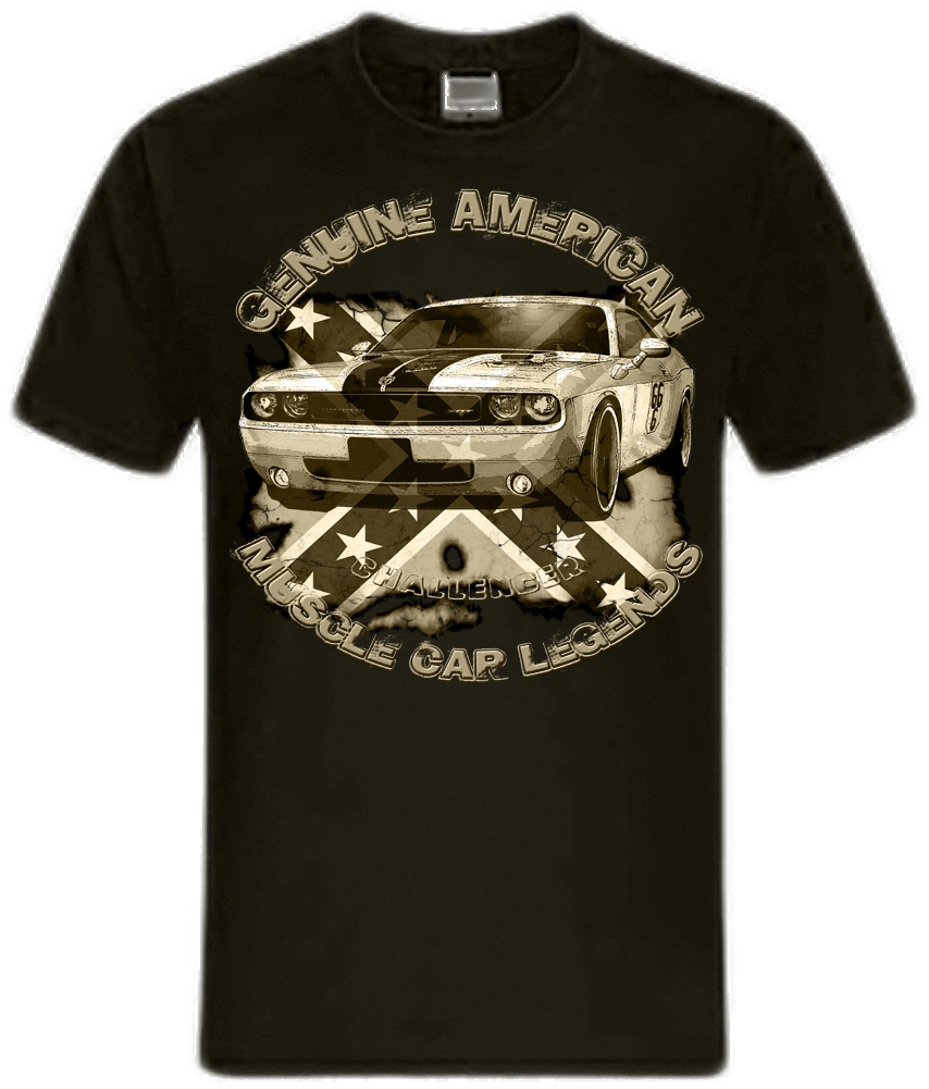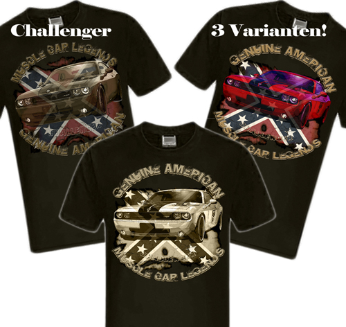 Amerikanischer Lifestyle, Donnernde V8 Motoren, gepflegte Spritvergeudung, Rock n Roll und Rockabilly. Sie erhalten ein exklusives Dodge Challenger Rebel Vintage Car Designer T-Shirt aus der SHIRTMATIC Motor & Rock Design Kollektion mit 3 Varianten: