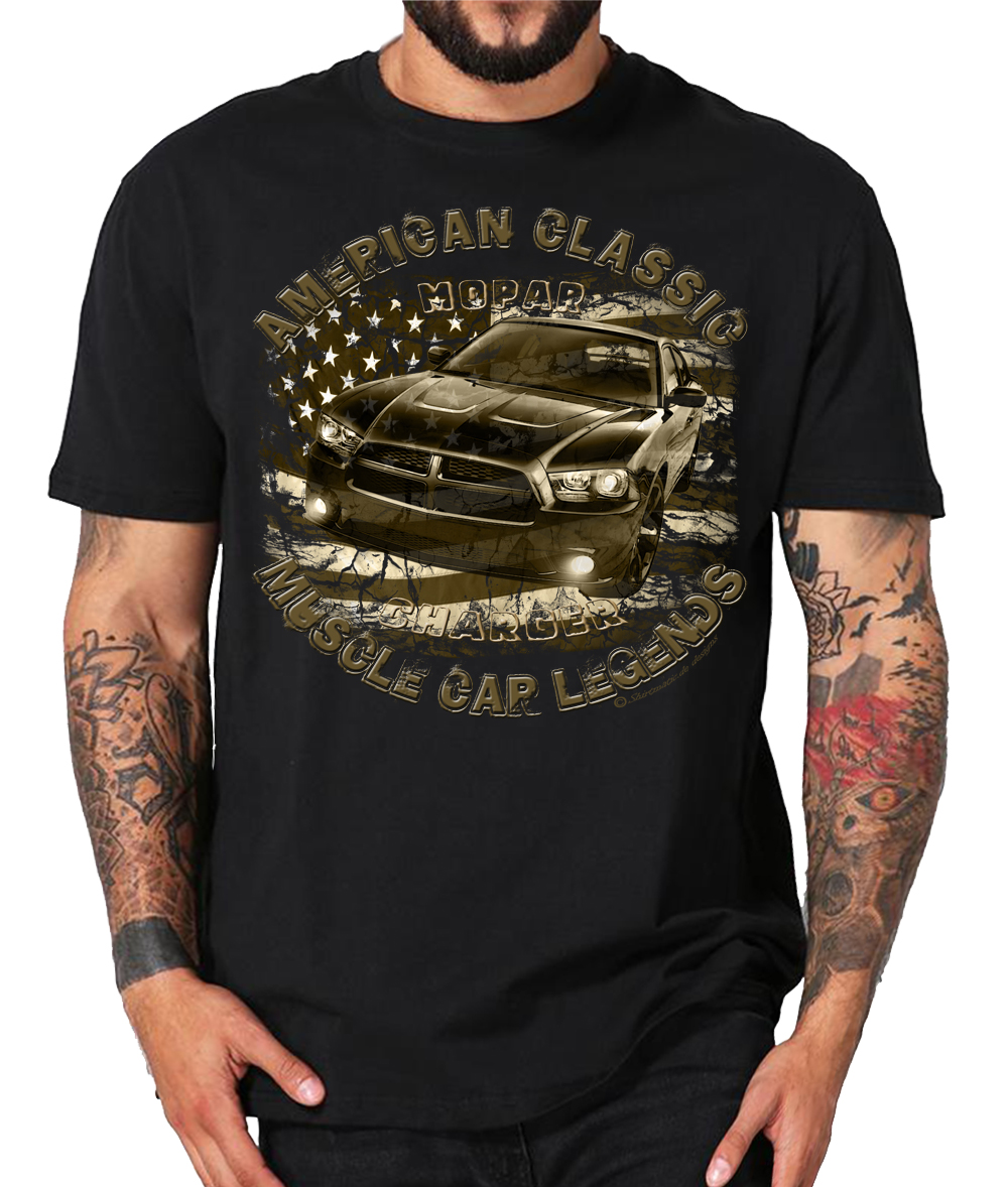 Modern Charger retro USA Muscle car V8 Dodge, T-Shirt US Car, Shirt Amerikanischer Lifestyle, Donnernde V8 Motoren, gepflegte Spritvergeudung, Rock n Roll und Rockabilly. Sie erhalten ein exklusives Dodge Charger Vintage Car Designer T-Shirt aus der SHIRTMATIC Motor & Rock Design Kollektion.