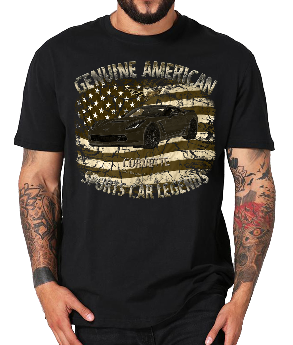 Amerikanischer Lifestyle, Donnernde V8 Motoren, gepflegte Spritvergeudung, Rock n Roll und Rockabilly. Sie erhalten ein exklusives Rockabilly Oldschool Custom Vintage Car Designer T-Shirt aus der SHIRTMATIC Motor & Rock Design Kollektion Corvette, Corvette Z6 USA