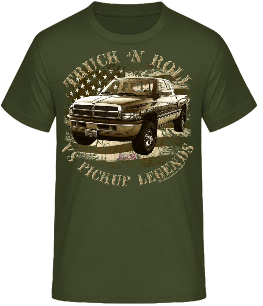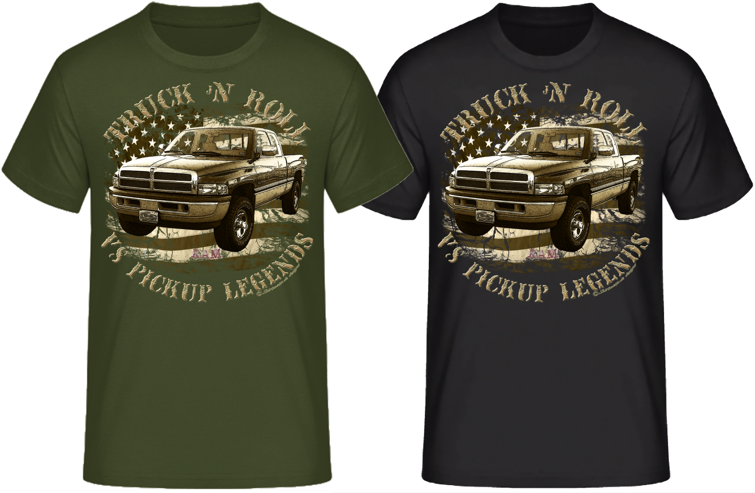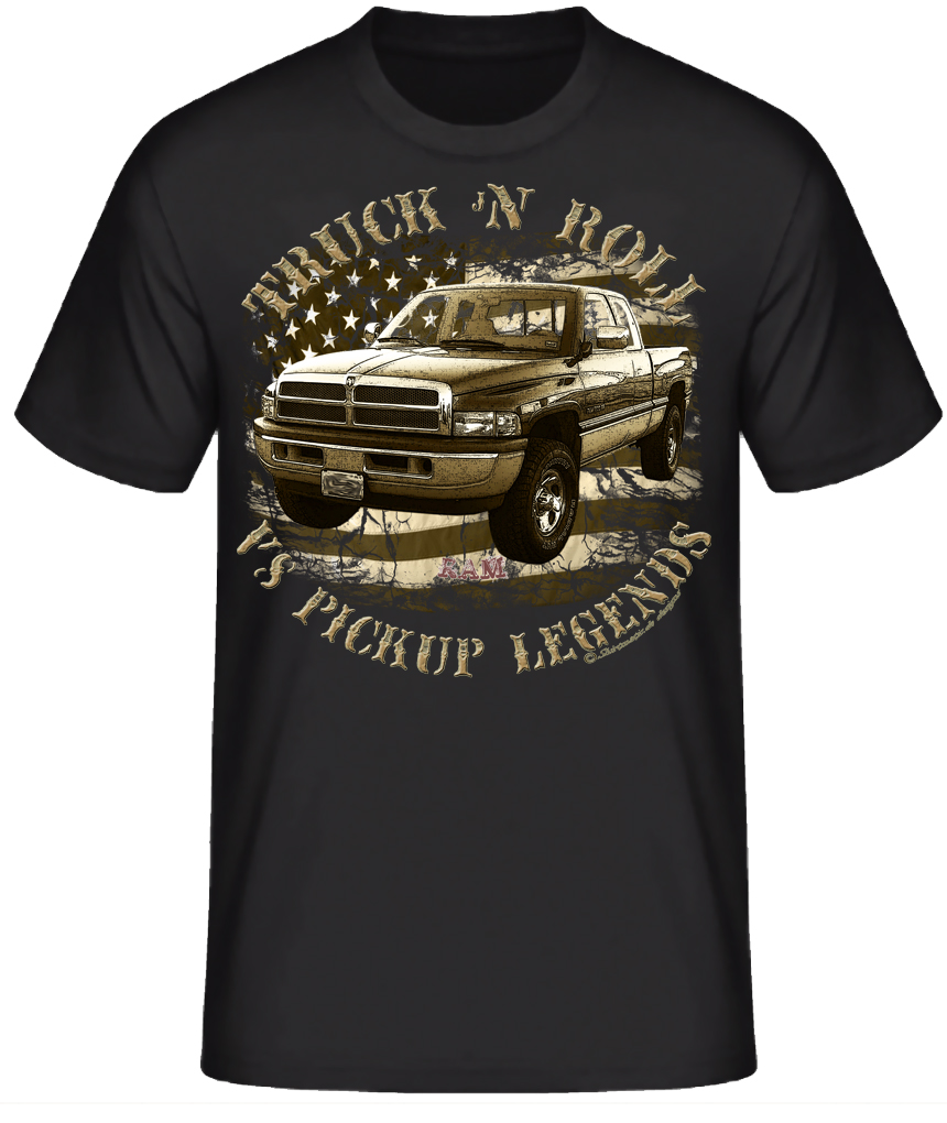 Sie wählen ein personalisiertes T-Shirt aus der SHIRTMATIC Design Kollektion US cars / Muscle cars, Hot Rod Dodge RAM Legends:
