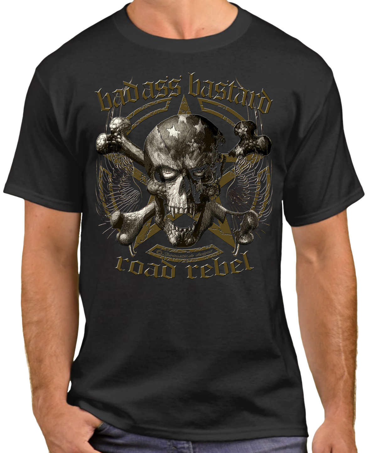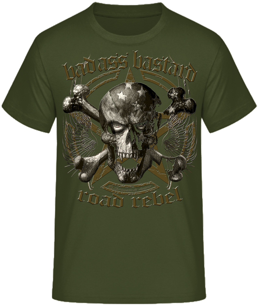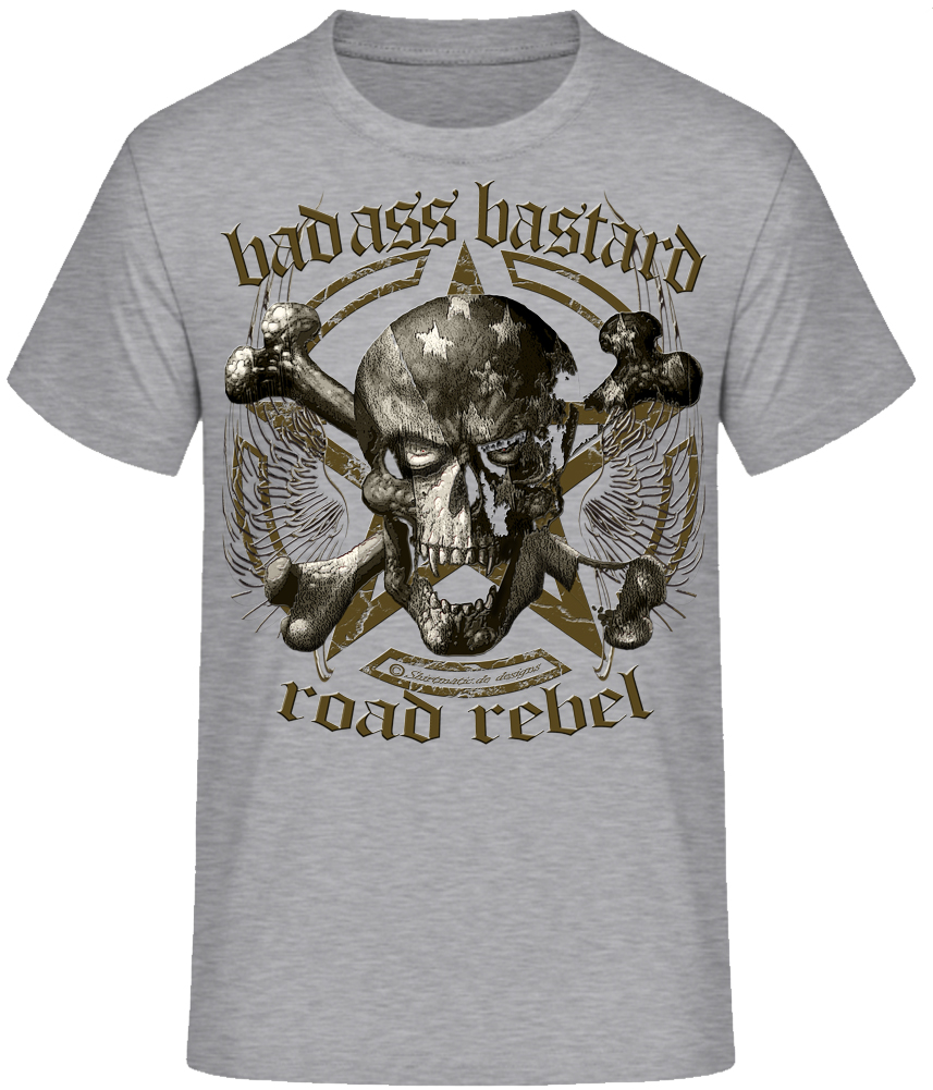 Biker Skull Totenkopf BadAss Bastard Road Rebel Tattoo Style Shirtmatic Designer T-Shirt Amerikanischer Lifestyle, Donnernde V2 Motoren, Biker Freiheit, Route 66, Rock n Roll und Rockabilly mit Varianten